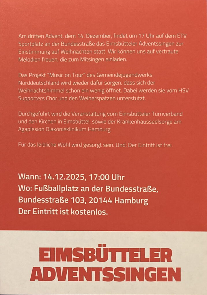 Dienstag, 25. November 2025, ab 19:00 Uhr – Präsent inkl. Imbiss EFG Altona und